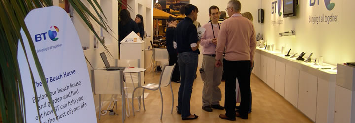 The Beach House was built to provide an eye catching space in which BT displayed and demonstrated their complete range of products and services available. The coastal environs in which the Beach House sat highlighted how easy it is to keep in touch with BT's portable devices both at home and away.