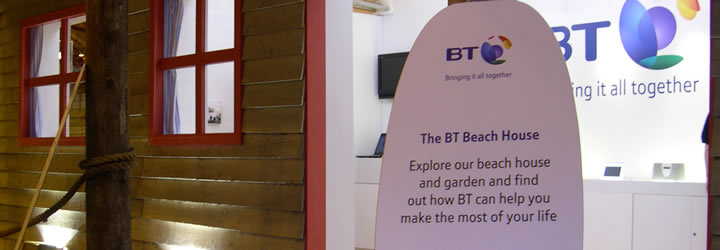 The Beach House was built to provide an eye catching space in which BT displayed and demonstrated their complete range of products and services available. The coastal environs in which the Beach House sat highlighted how easy it is to keep in touch with BT's portable devices both at home and away.